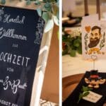 Schifffahrt auf dem Rhein eingeplant, sodass keine Langweile bei den Gästen aufkam. In der Feierlocation angekommen haben wir die Tische passend zum Dekokonzept gestaltet und für jeden Gast gab es eine individuelle Platzkarte die im Vorfeld anhand von Fotos gezeichnet wurde.
