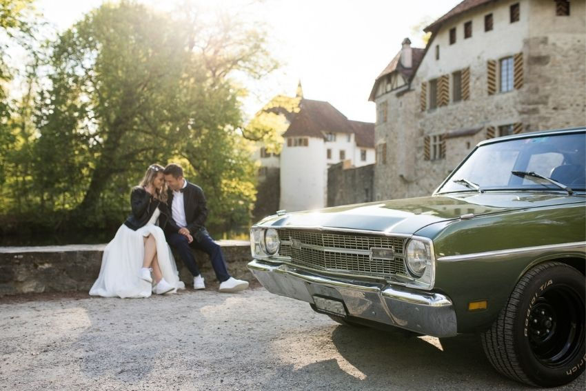 Das Hochzeitsauto war die Inspirationsquelle für das gesamte Styling. Pasquale, der stolze Autobesitzer verbindet mit dem Auto Rock und Rockabilly. Coole Jeans mit Lederjacke oder auch einen Anzug. „Wenn ich mit dem Dodge unterwegs bin, ist es meistens an einem schönen sonnigen Sonntag. Zu Hause ins Auto steigen und losfahren bis zu einem Ort der mir gefällt." Das ist genau das Prinzip einer Elopment-Hochzeit.